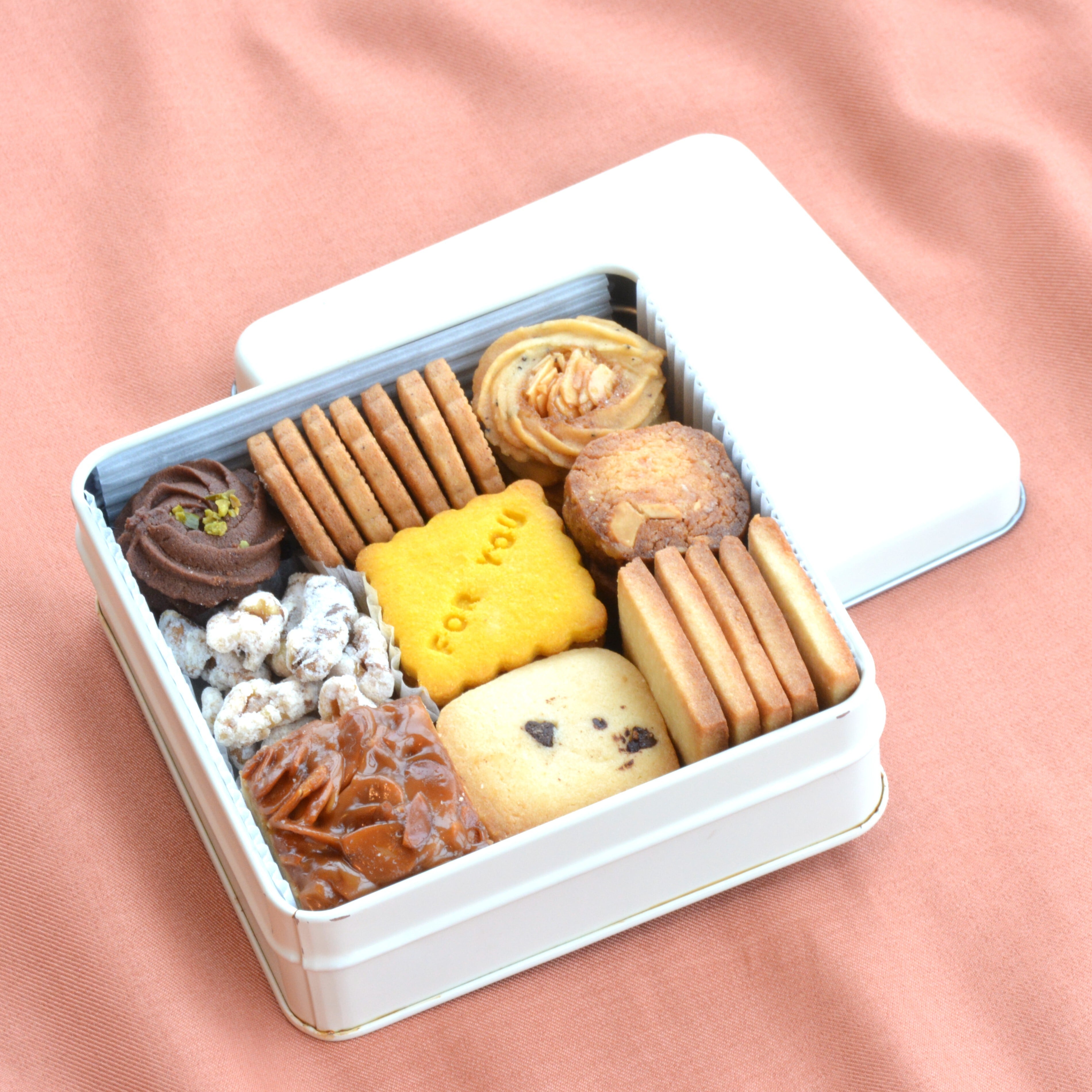 キャラメリゼしたマカダミアナッツと塩のバランスが美味しいザクザクとしたクッキーです。