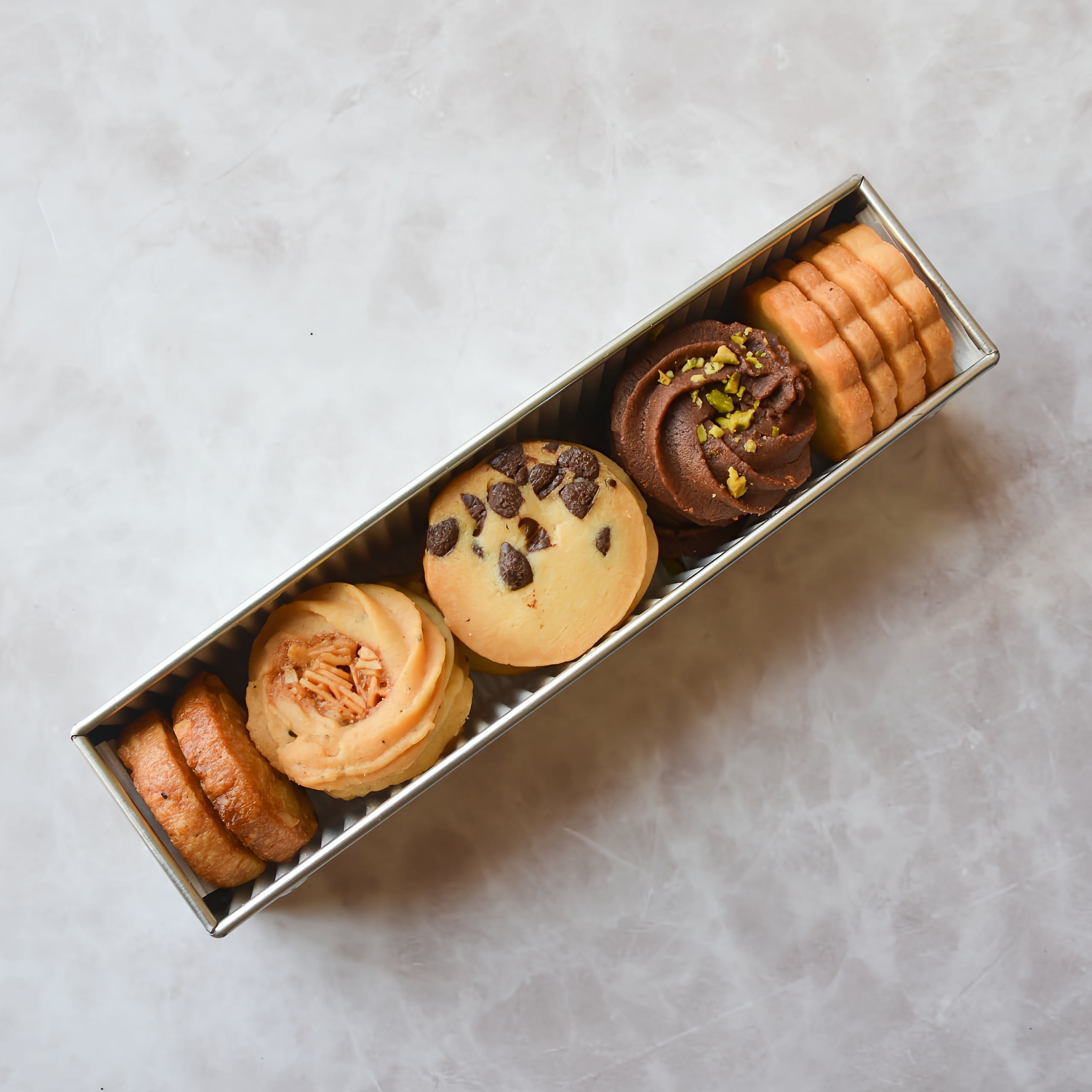 北海道産バターやフランス産小麦粉などこだわりの素材を使用したクッキーが5種類入っています。