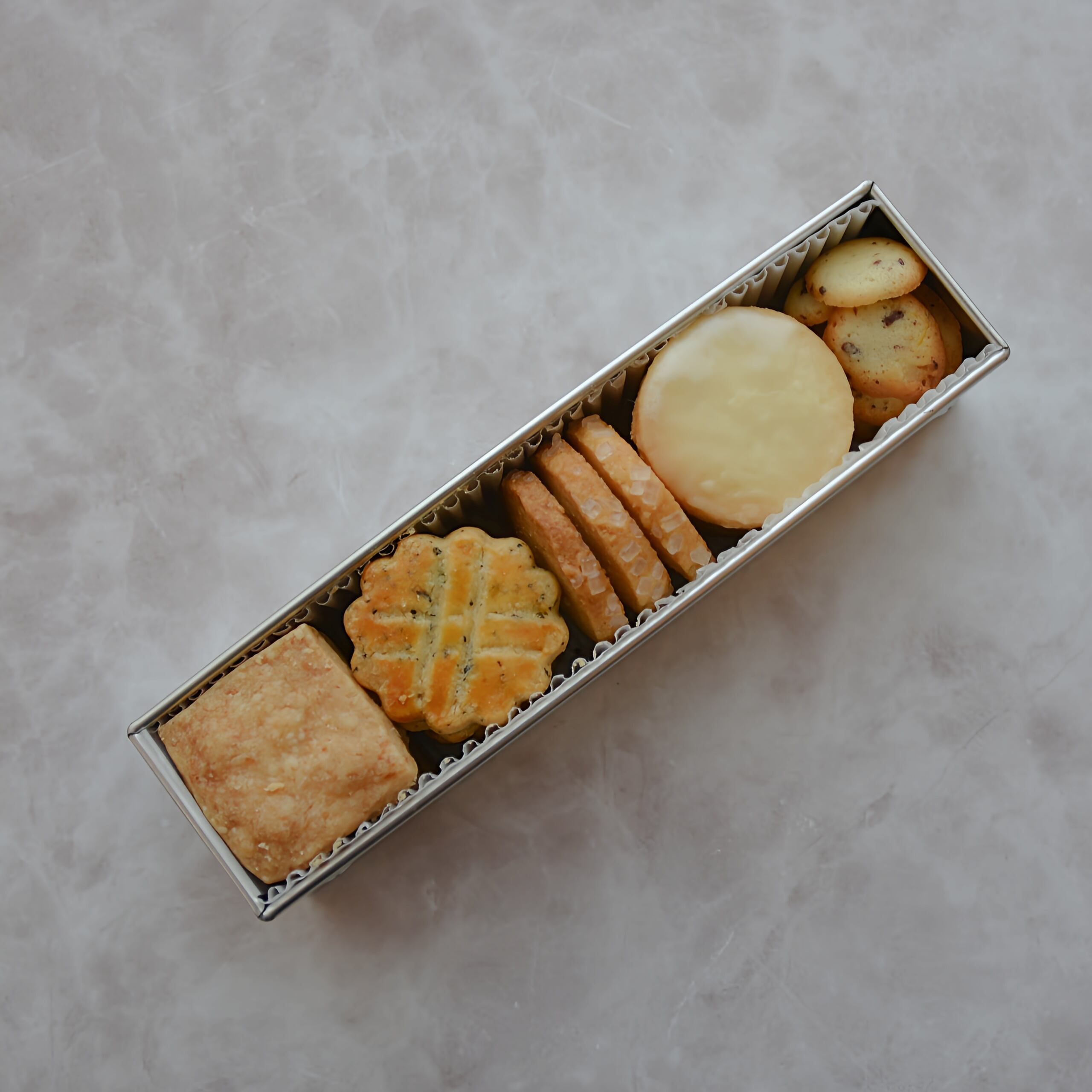 北海道産バターやフランス産小麦粉などこだわりの素材を使用したクッキーが5種類入っています。